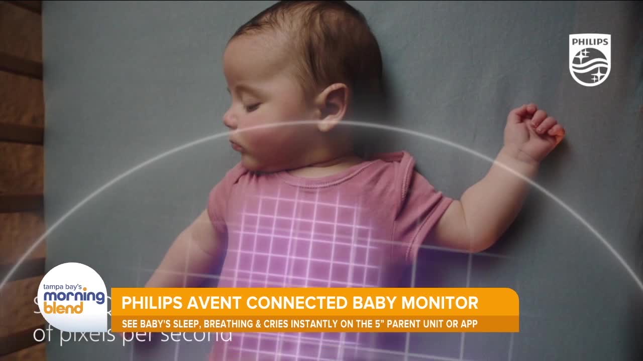 The Philips Avent Premium Connected Monitor allows parents to see baby's sleep status and breathing rate with SenseIQ; keep an eye on baby on the 5” Parent Unit or Baby Monitor+ app, and interpret cues with cry translation.