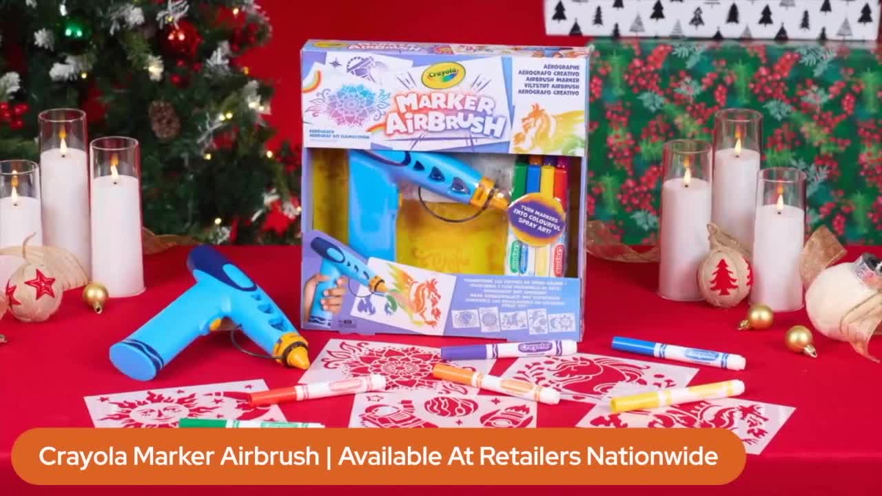 Looking for a creative gift that stands out? The Crayola Marker Airbrush turns regular markers into a spray-art experience kids will love. Easy to use, mess-free, and completely reusable, it lets kids make colorful stenciled or freestyle designs with just a spray. A fun, screen-free way to inspire creativity this holiday season! Available at retailers nationwide.