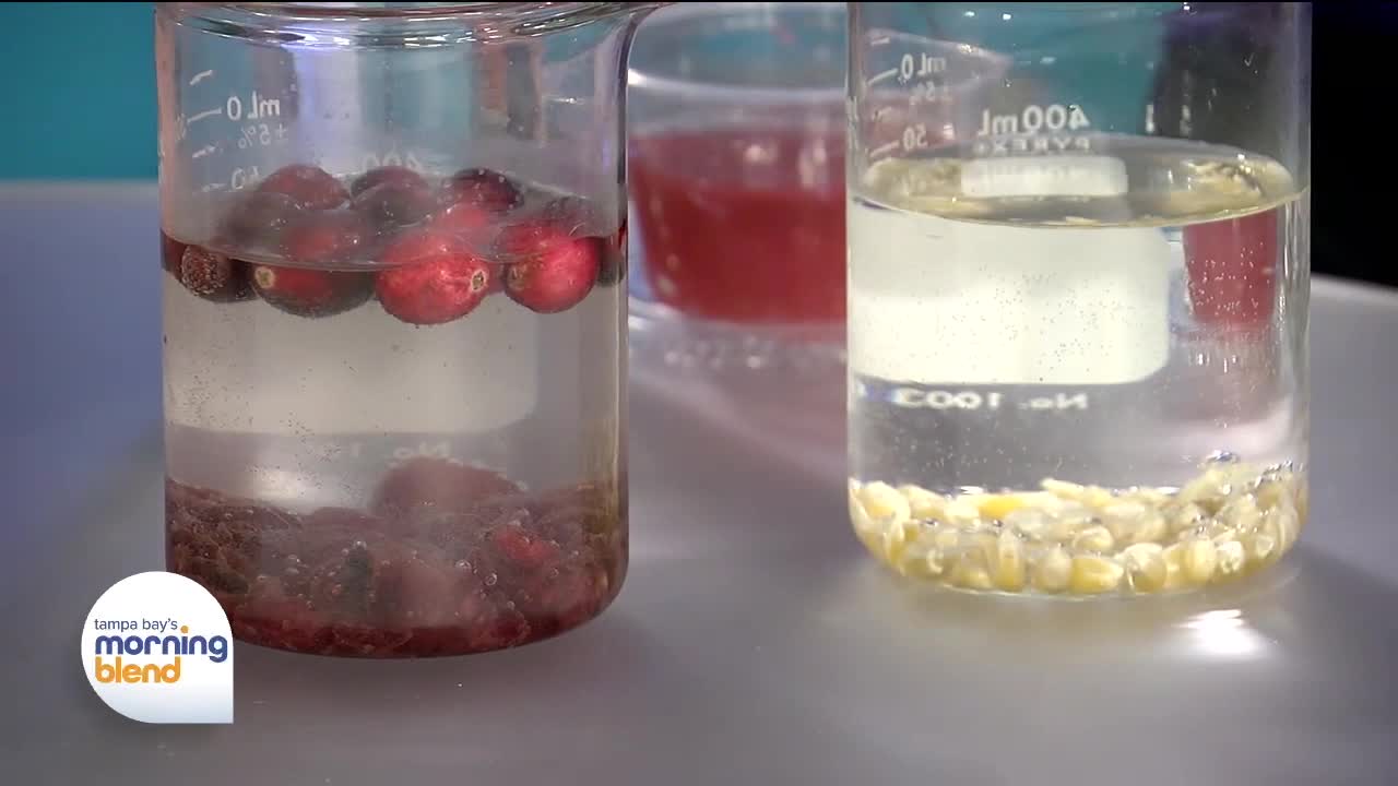 We talk about density as we demonstrate the difference in the regular vs dried cranberries vs popcorn kernels floating in plain water.