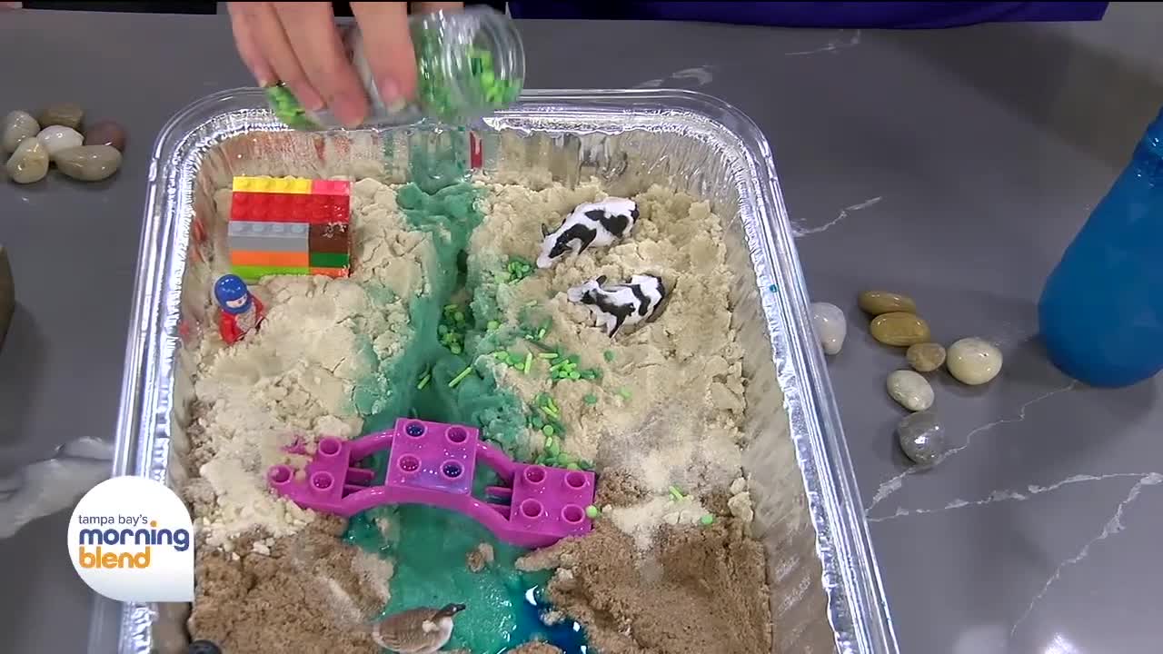 Did you know rivers are like nature's construction crews? Today we're going to make our own river and watch how water shapes the land-just like what happens during MOSI's Water Days. Water always flows downhill, and as it moves it shapes the land. When we pour water on this sand hill, it creates little rivers that carve channels. This is called erosion, when moving water carries soil and sand away.