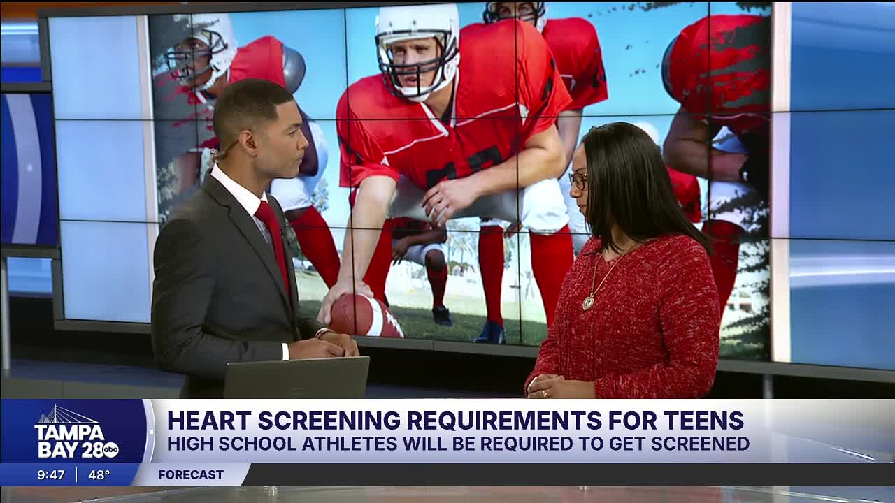- She also talks to Tampa Bay 28 anchor Andrew Kinsey about the new Florida requirement, beginning in the fall, that high school athletes undergo a heart screening before they can try out or play a sport.