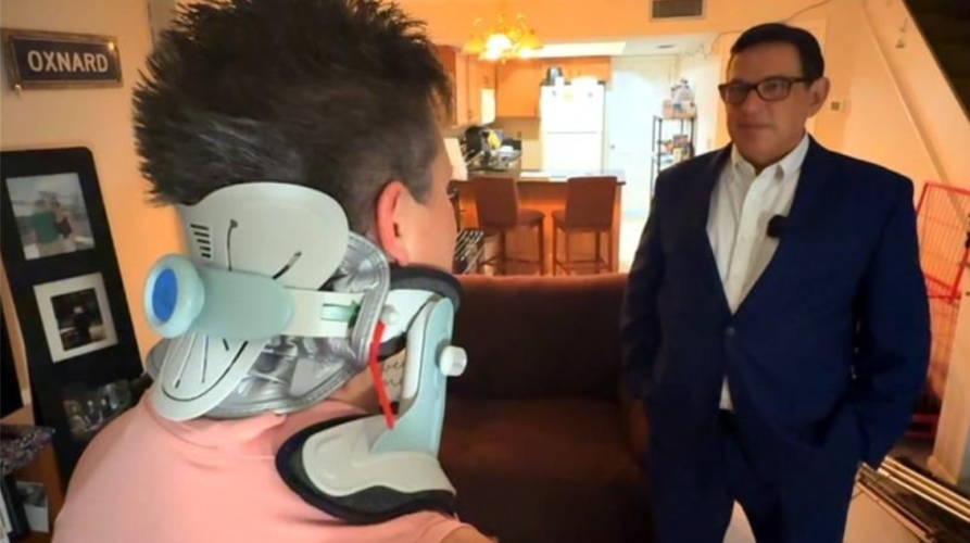 Kelley now wears a neck brace multiple times daily and describes it as "very uncomfortable."