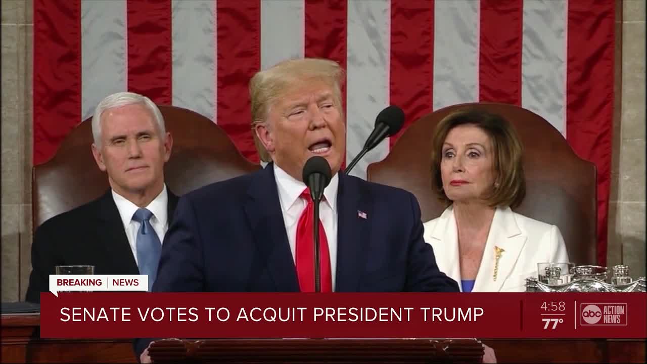 President Donald Trump has been acquitted on both articles of impeachment on Wednesday by the United States Senate, the first article by a mostly party-line vote of 52-48 voting for conviction.. The vote on the second article of impeachment ended with 47 Democrats voting guilty, while all 53 Republicans voted not guilty.