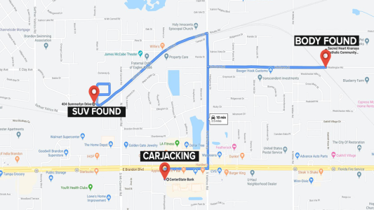 HCSO initially responded to a call of an armed bank robbery at the CenterState Bank in the 1800 block of Fl-60 East in Valrico. As the armed bank robbery suspect was trying to leave the bank, the suspect pointed a gun at 68-year-old Mathew Korattiyil, shoved him to the passenger's side of his white 2019 Lexus SUV and carjacked him.