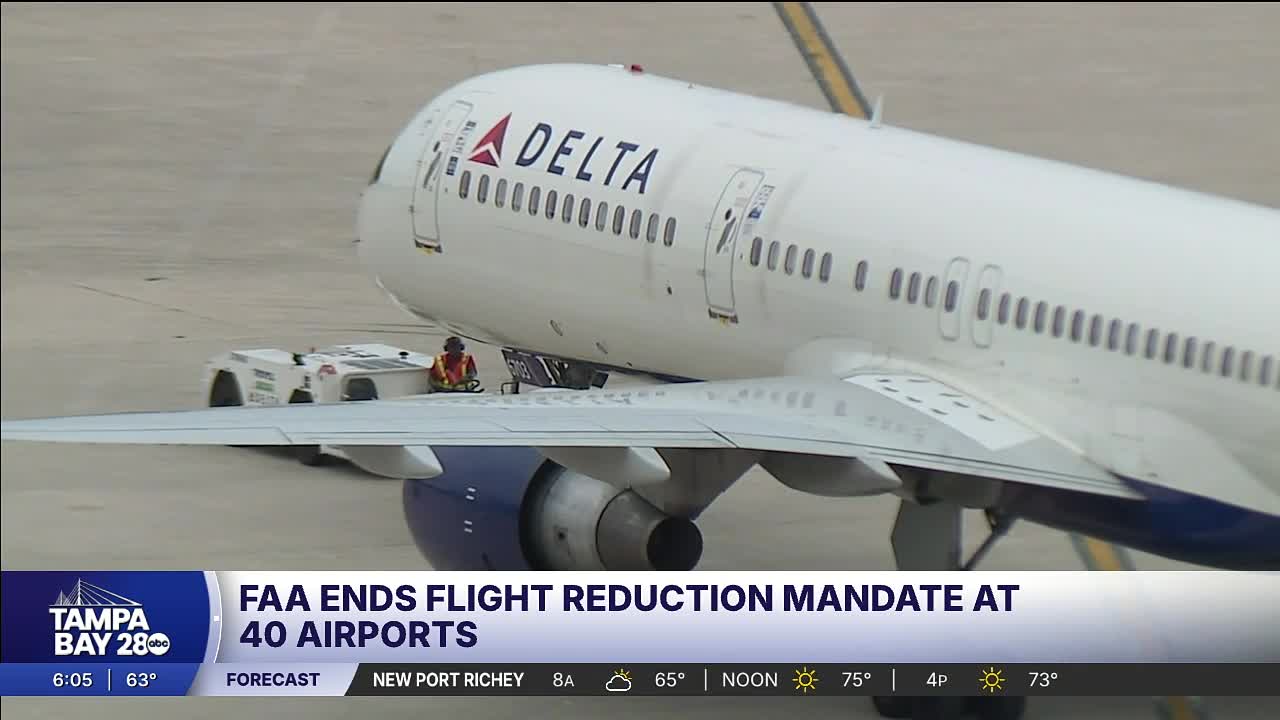 TAMPA, Fla. — Now that the shutdown has officially ended, we are beginning to see things slowly start to return to normal, including at airports. As of 6 a.m. Monday morning, the Federal Aviation Administration lifted its flight reductions at all affected airports. Over a week ago, the F.A.A. began cutting 10 percent of flights at 40 major airports across the country due to staffing shortages from the shutdown.
