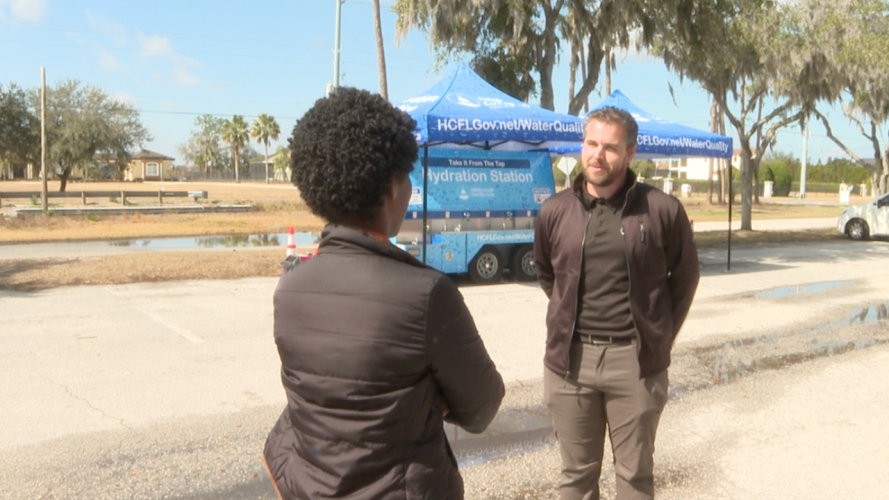 Hillsborough County has deployed its mobile hydration stations to provide relief to affected residents. London Womack, division director of plant operations, oversees the emergency water distribution effort.