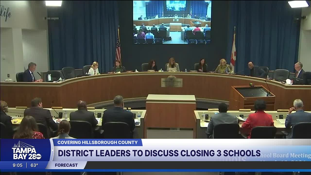 TAMPA, Fla. — The Hillsborough County School Board could decide to close three schools.