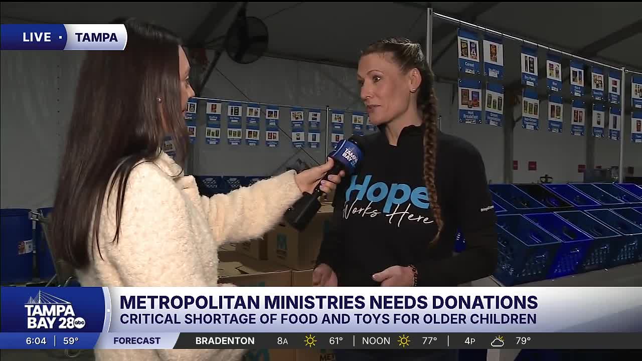 HILLSBOROUGH COUNTY, Fla. — Metropolitan Ministries is experiencing a critical shortage of food and toys as the organization works to meet record demand from families in need this Christmas season.