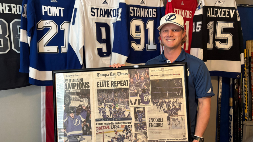 From cards, to sticks to jerseys, Chris Weisman has thousands of pieces of Lightning memorabilia, the majority of it is autographed.