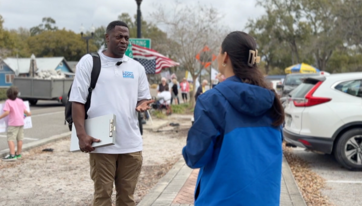Robert People, a candidate for Florida's 15th Congressional District, attended the rally to show support for those exercising their First Amendment rights.