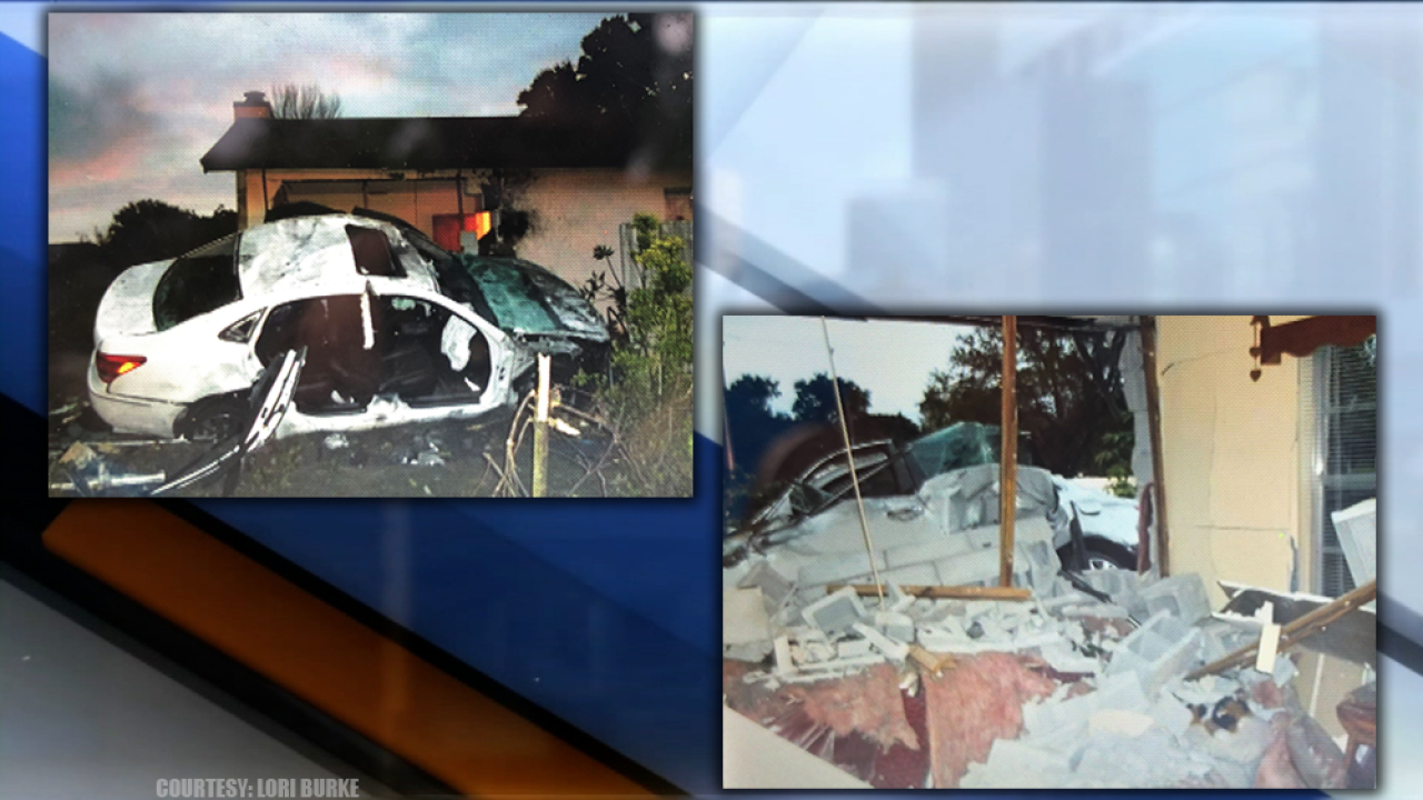 LARGO, Fla. — Two people were injured after a car crashed into a Largo home on Friday morning while the homeowner was inside drinking coffee and eating breakfast.