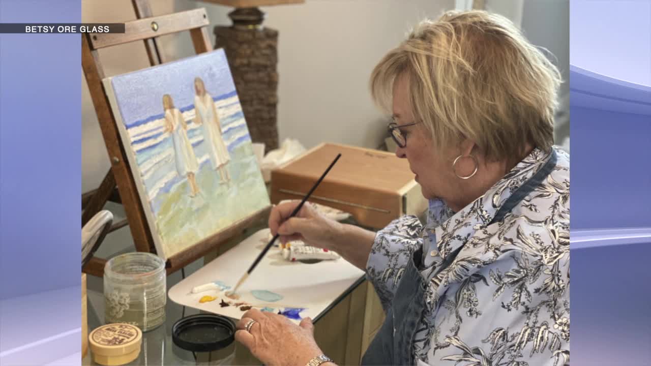 Betsy didn’t even start painting until she was in her 50s. It was a source of therapy while battling cancer. She never imagined one day her work would be on display for hundreds of people to see, every month, while attending various meetings.