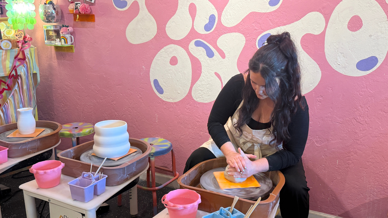 Today, she owns a brick-and-mortar shop filled with bright colors, cheerful phrases, and fun designs. Her pottery often features happy faces and flowers, elements she said reflect the mental health journey woven into her work.