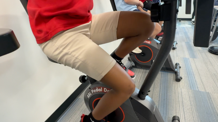 The school recently launched an effort to incorporate physical activity into classrooms, bringing in things like bike desks, boomer boards, balancing disks and bouncing seats.