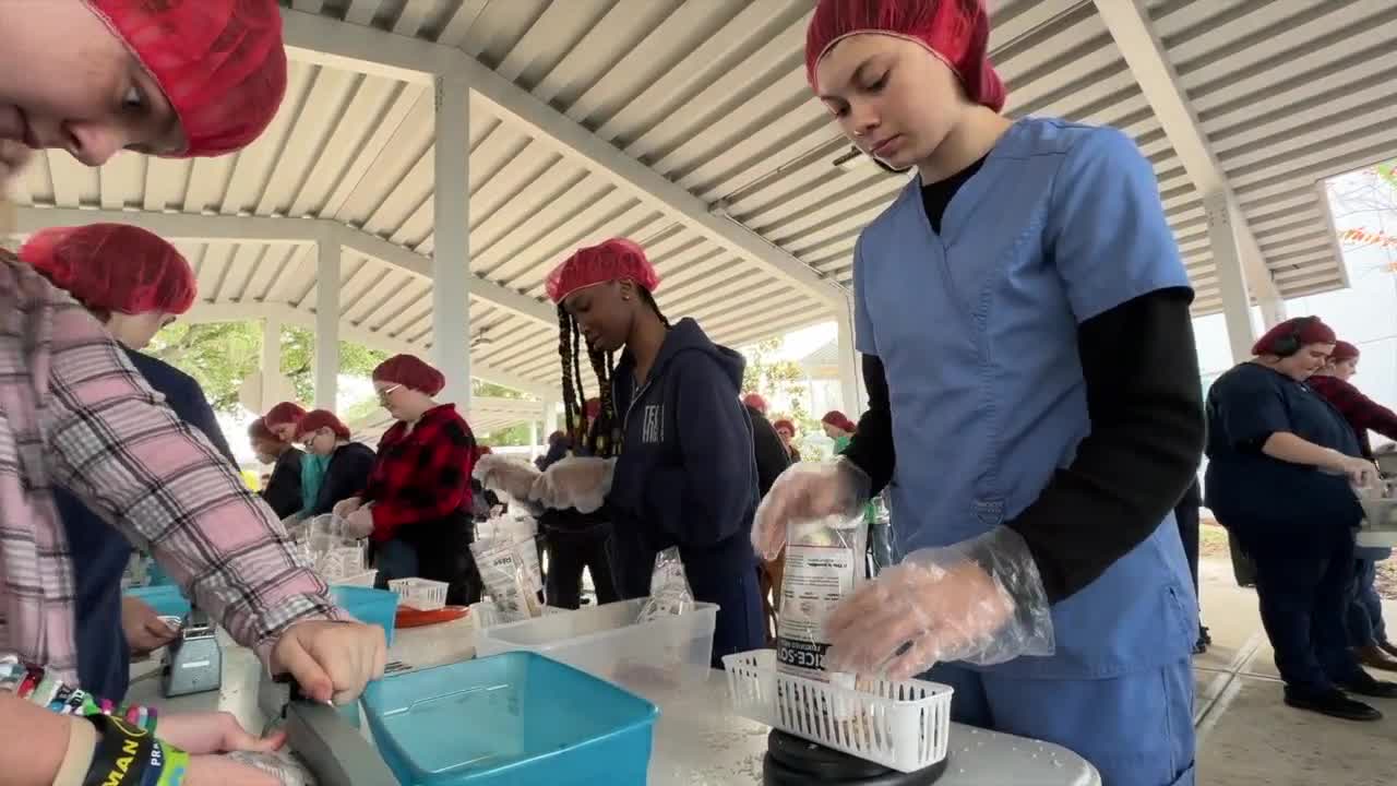 “We’re partnering with an organization called Rise Against Hunger through our community partner, Rotary International. We have a high school version of Rotary called Interact Club here, and we thought it was a great opportunity to expose our kids to some service projects and get them involved with helping others in the community,” said Josh Wolfenden, the school’s principal.