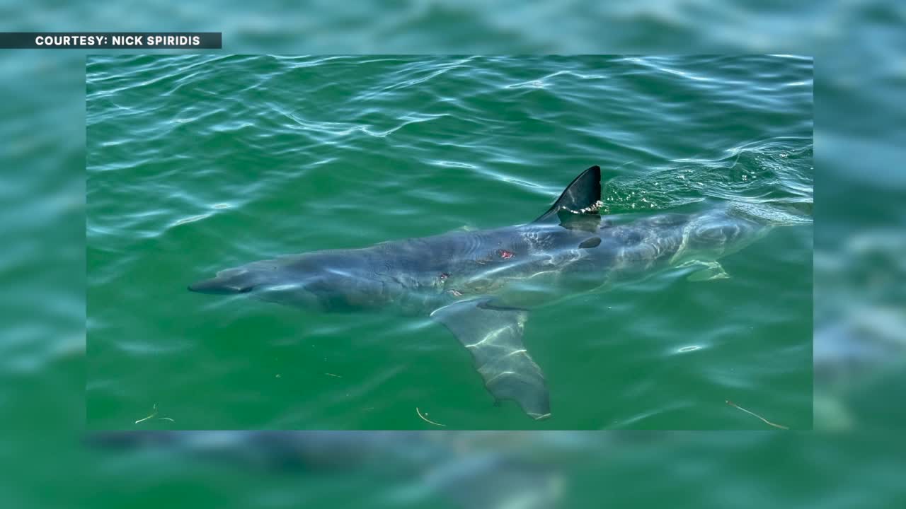 “They were acting really funny,” he said. “I saw commotion in the water, and then, all of a sudden, it stopped, and the dolphins started to move away.”