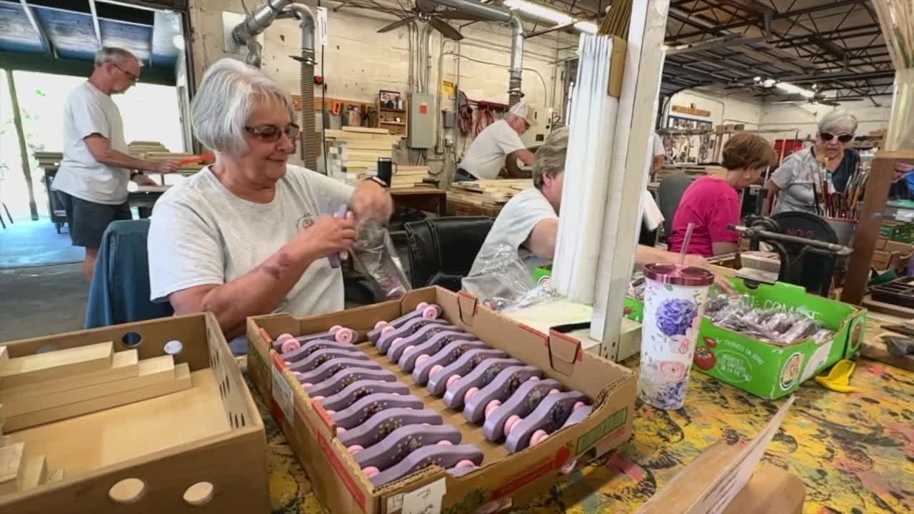 “So, we’ve been around since 2007,” said Toy Maker Theresa Chapman. “We start with a donated piece of wood, and we turn it into this beautiful toy, there are 36 steps in between, and a lot of love goes into it.”