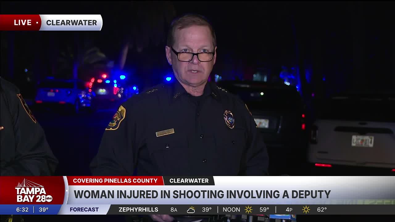 CLEARWATER, Fla. — The Clearwater Police Department (CPD) said a woman with a cordless drill was hospitalized after a confrontation with Pinellas County Sheriff's Office (PCSO) deputies on Tuesday morning.