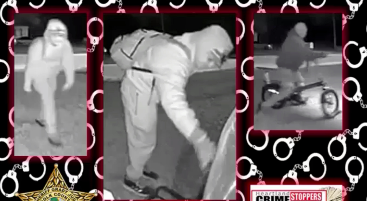 The Polk County Sheriff's Office is looking for two suspects who stole a package and wagon on Hammock Loop in Polk City on Dec. 10.