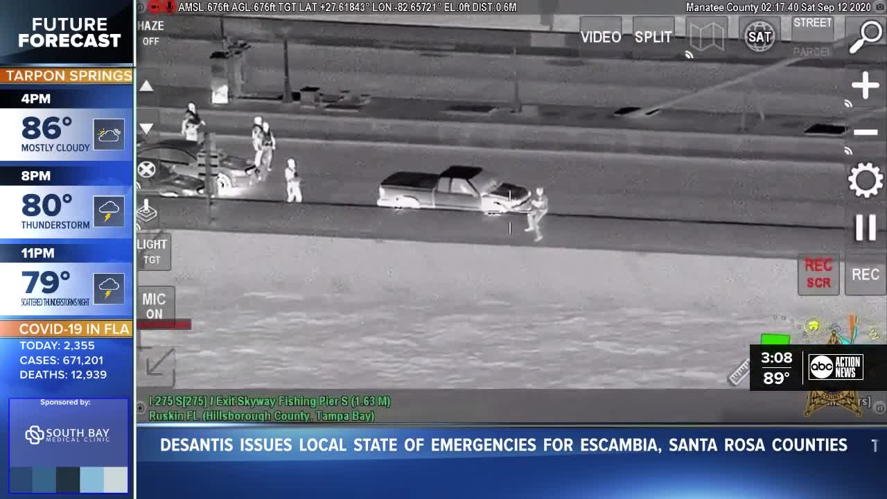 The Manatee County Sheriff's Office released helicopter video on Wednesday of deputies taking a suspected DUI driver into custody from the edge of the Sunshine Skyway earlier this week.