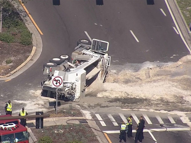 Cement truck overturns in St. Petersburg