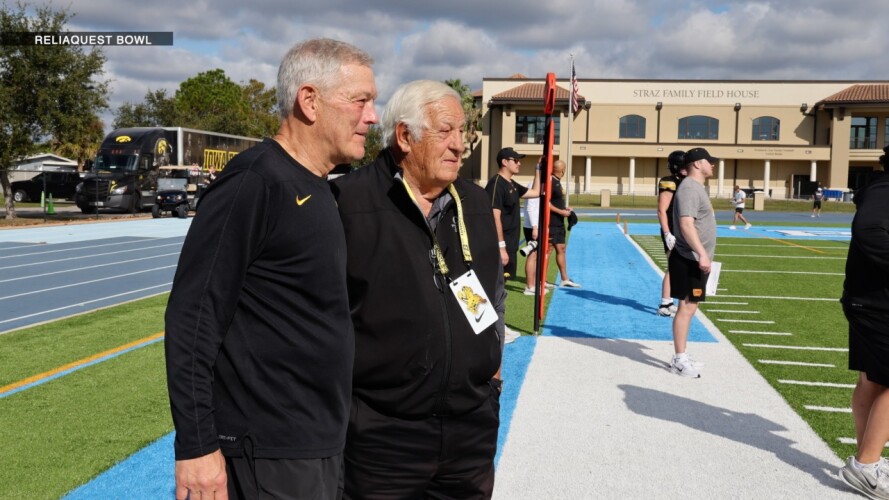 TAMPA, Fla. — Former University of Iowa quarterback, longtime NFL coach and Tampa Bay Buccaneers’ offensive consultant Tom Moore stopped by Hawkeyes practice leading up to the Reliaquest Bowl.