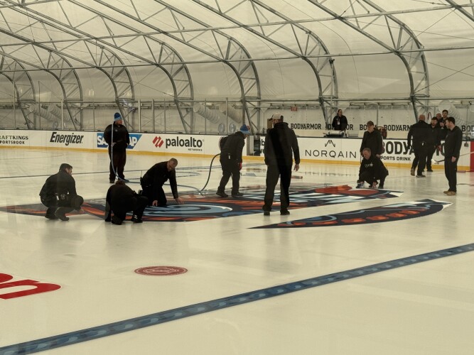 "Today's really a big day for us. The ice is taking shape. We're 72 hours away from game day. Only 48 hours away from practice day," Higgins added. "We're really excited to get the teams out here and have them work on the ice, work in the ice before the game."