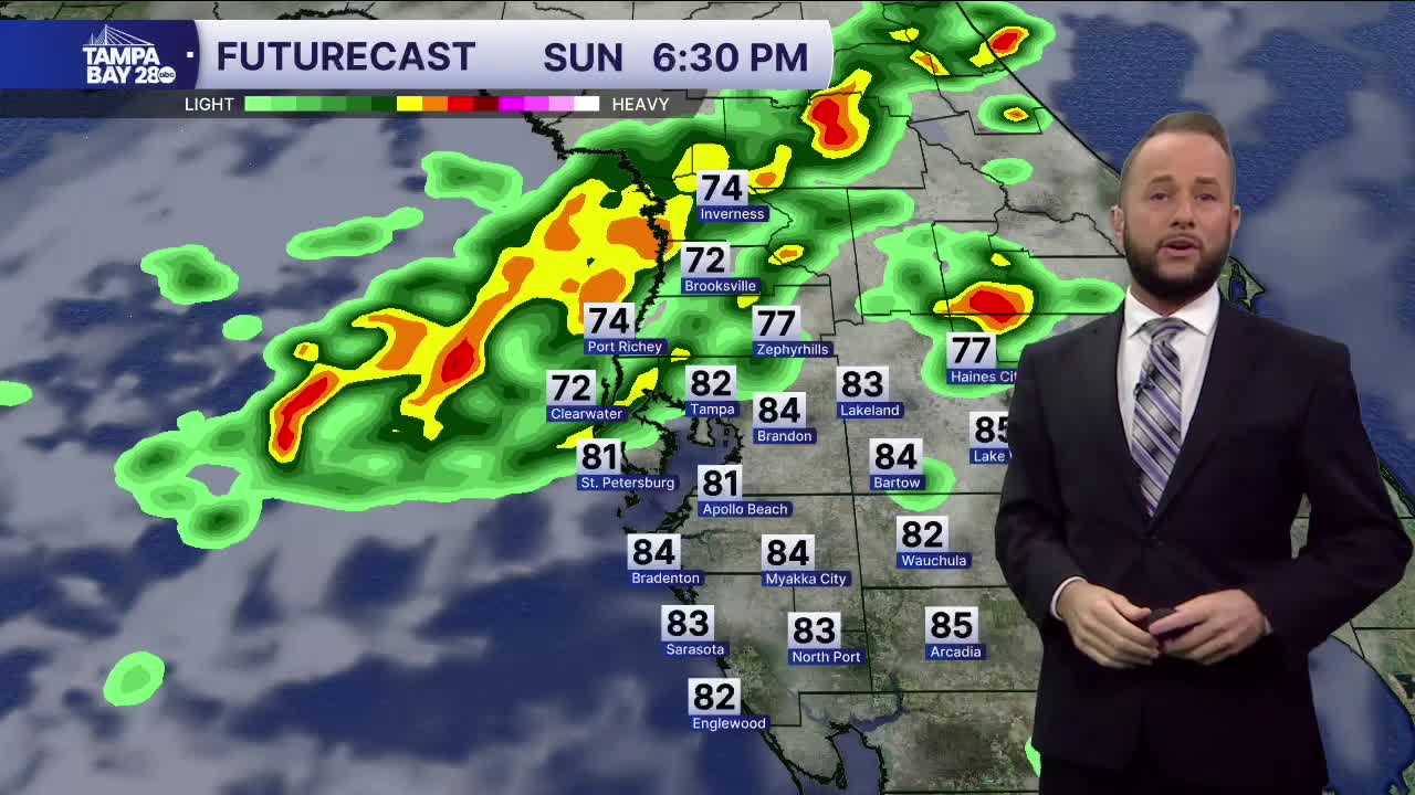 A weak cold front will bring a few showers and storms north of I-4 after 3 p.m. Highest rain coverage will be around 40% for Citrus and Hernando counties. Expect a 10-20% chance south of I-4.