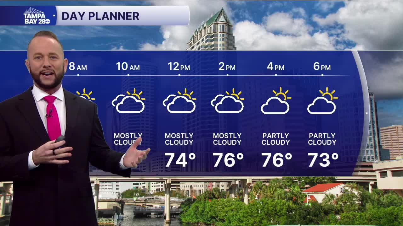Expect partly to mostly cloudy skies today with a few showers and storms, mainly south of I-4 and inland. Coverage will be spotty around 30% vs the 80% we had last night.