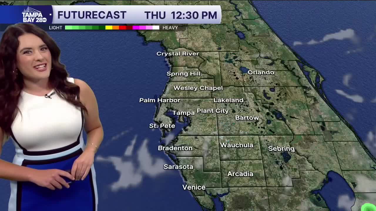TAMPA — Good Thursday Morning Tampa Bay! It is a cooler start for some in the upper 50s and low 60s, but those south of Tampa are waking up near 70 degrees. Our weak cold front continues to pass on through. Winds will be breezy because of this over the next few days. Gusts up to 25 mph are expected from tonight to Sunday. Skies stay mostly sunny will dominate over the next few days with highs in the mid to upper 80s as high pressure takes over. Cooler morning lows with widespread 60s and upper 50s across the area are expected tomorrow as well. Saturday looks nice, dry and warm. Sunday more clouds move in. Monday looks to see the best rain chance with another cold front. This will drop temps significantly.