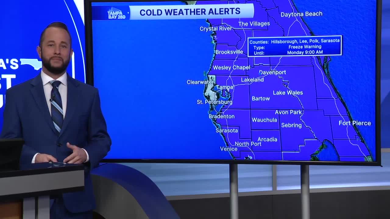 Expect another frigid night as temperatures are once again forecast to fall below freezing for the bulk of Tampa Bay. Freeze warnings have been issued once again for all but Pinellas Co, but even in Pinellas, a few northern spots could dip close to 32.