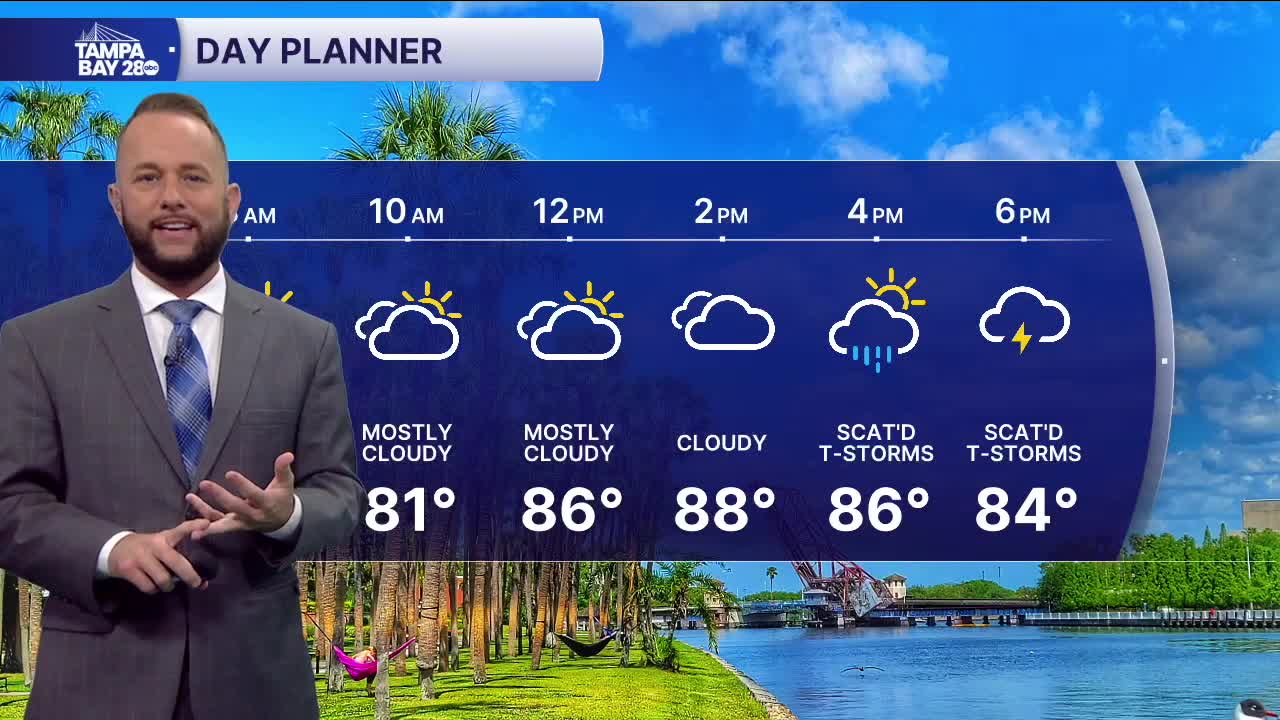 Expect another day with gusty winds and a few showers and storms, mainly this afternoon and evening.