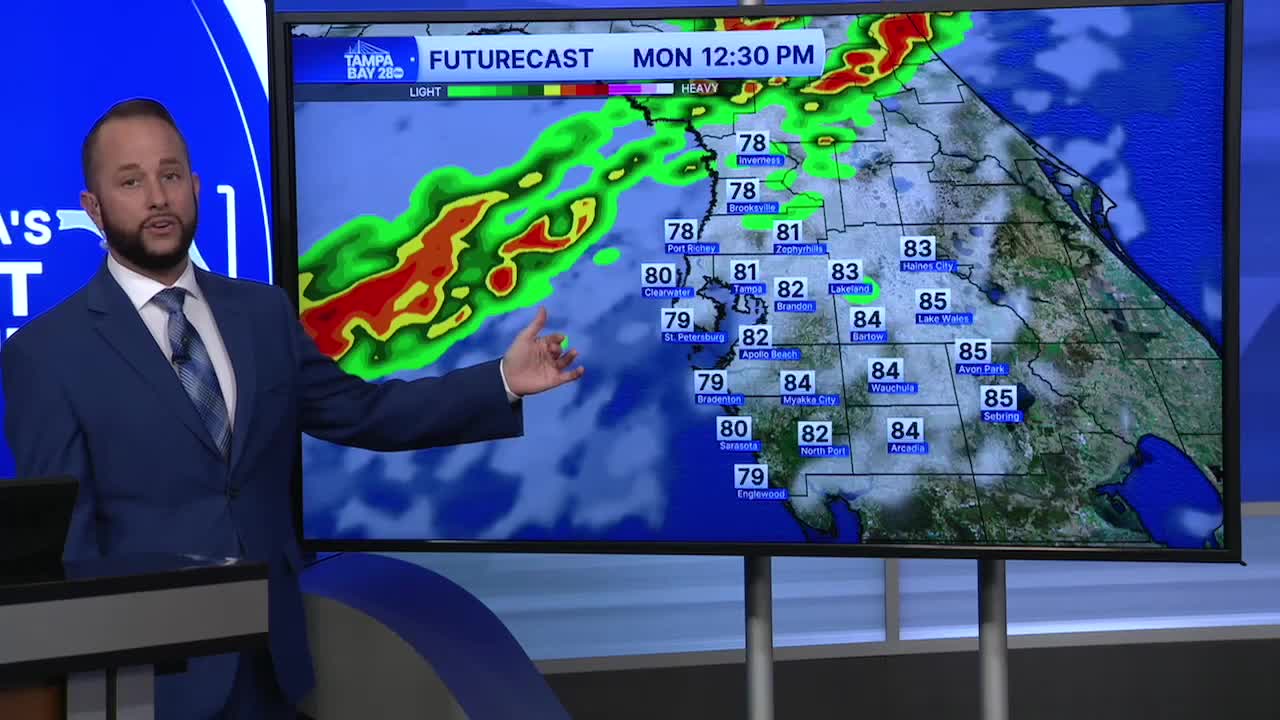 Expect a better chance for showers and thunderstorms Sunday, with the highest coverage expected along and east of I-75. SW winds return tomorrow afternoon ahead of Monday's front, so the sea breeze shower and storm threat will shift inland between noon and 6 p.m.