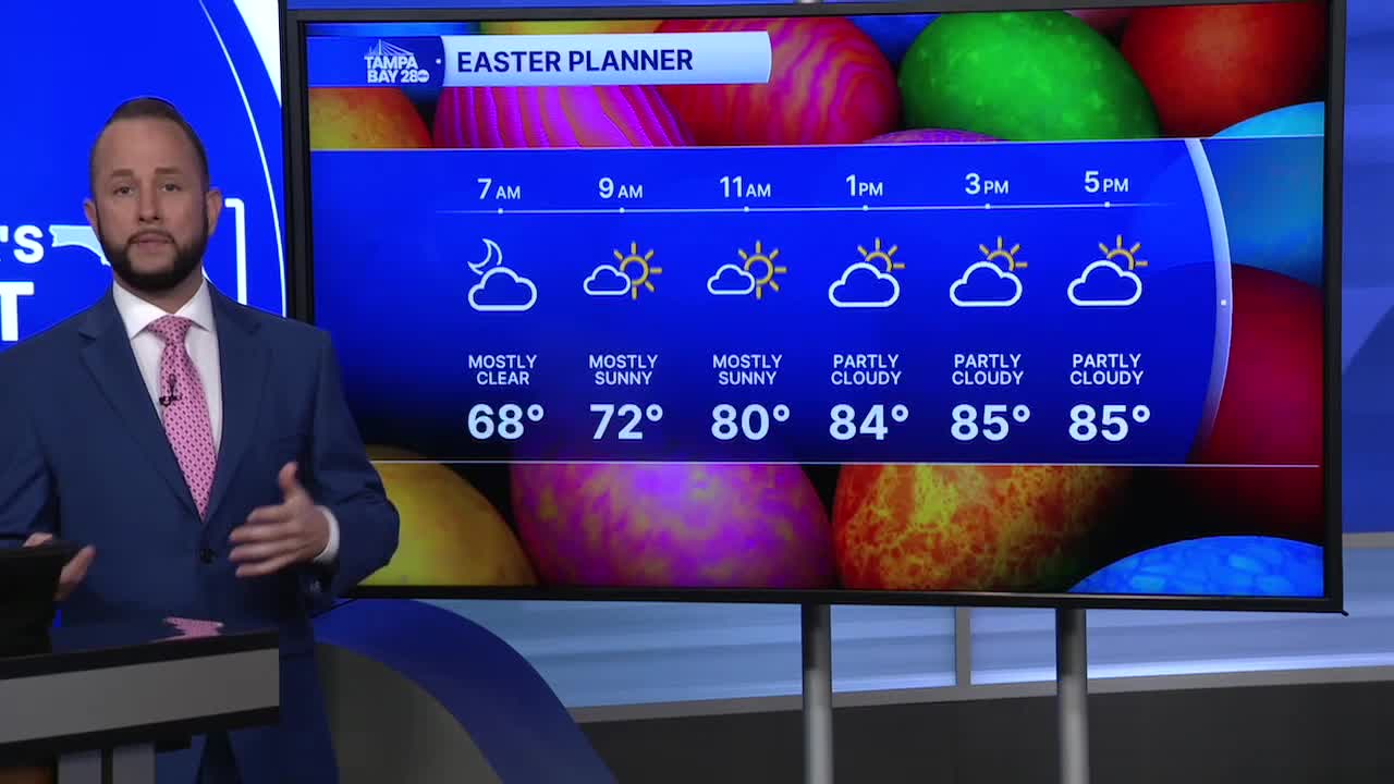 Expect a gorgeous start to your Easter Sunday with mostly clear skies and sunrise temps around 70. Church services look just fine!
