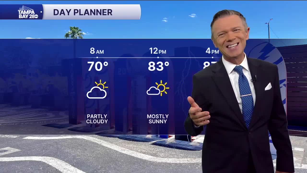 We'll see sunny skies today and highs in the 80s along the coast, thanks to a sea breeze that will move in during the afternoon. East of I-75, the sea breeze is not likely to have much of an impact, so expect warmer temps there, in the low 90s.