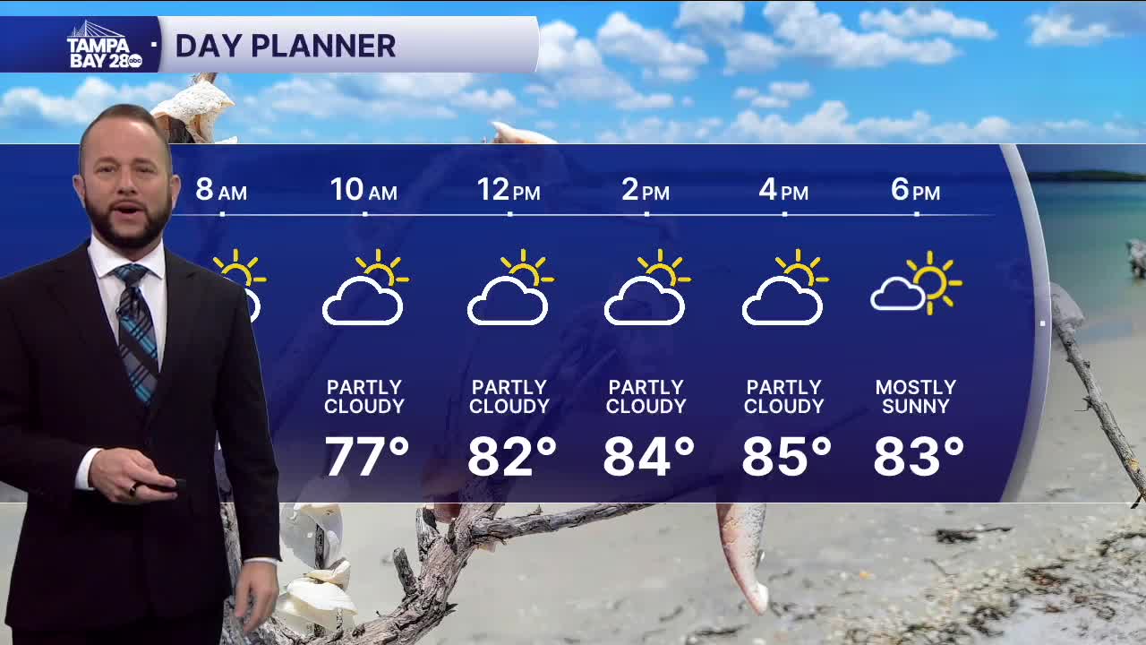 Tuesday, we'll see partly cloudy skies with highs in the low 90s along I-75, upper 80s at the coast and inland. The east wind will set up through the rest of the week, so hot temps are here to stay.