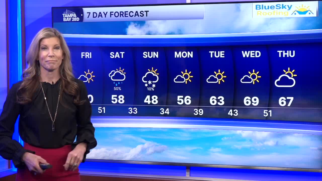 Sunday will be sunny and cold with highs in the 40s. The Bolts game begins at 6:30pm with winds beginning to relax and temps in the mid 40s. Perfect weather for an outdoor hockey game in Florida.