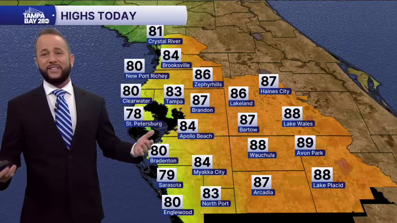 Tuesday morning, we'll see temps drop into the 30s for most of us, with 20s possible north of I-4. A Freeze Watch is in effect for Tuesday morning for the Nature Coast. Wind chills will drop into the 20s and 30s.