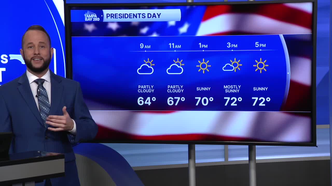 Tomorrow morning, we'll start with temps around 60 with a mix of clouds and sunshine. Highs for Presidents Day will top out in the low to mid 70s.