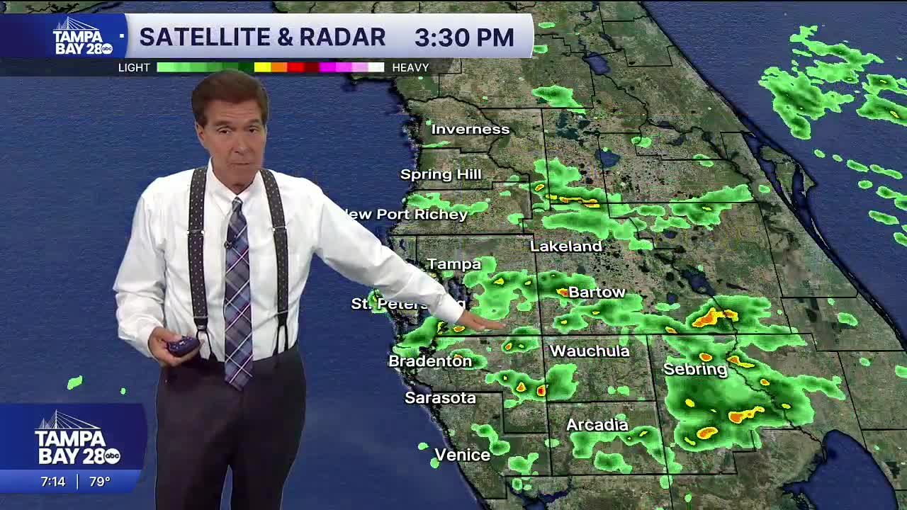TAMPA, Fla. — Tampa Bay is in for a week of some rain showers. Chief Meteorologist Denis Phillips says easterly winds often means some rain on the East Coast and if the flow is right, some of those showers actually make it all the way to the West Coast of The Sunshine State. And they did today, and they will do so again Tuesday, as well as Wednesday.