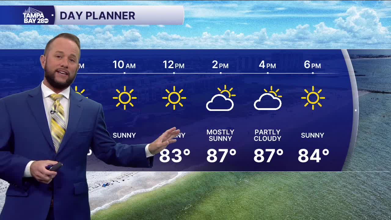 Expect gusty east winds this weekend a few isolated showers Sunday. Highs stay warm in the mid to upper 80s. Cooler weather arrives by Wednesday.