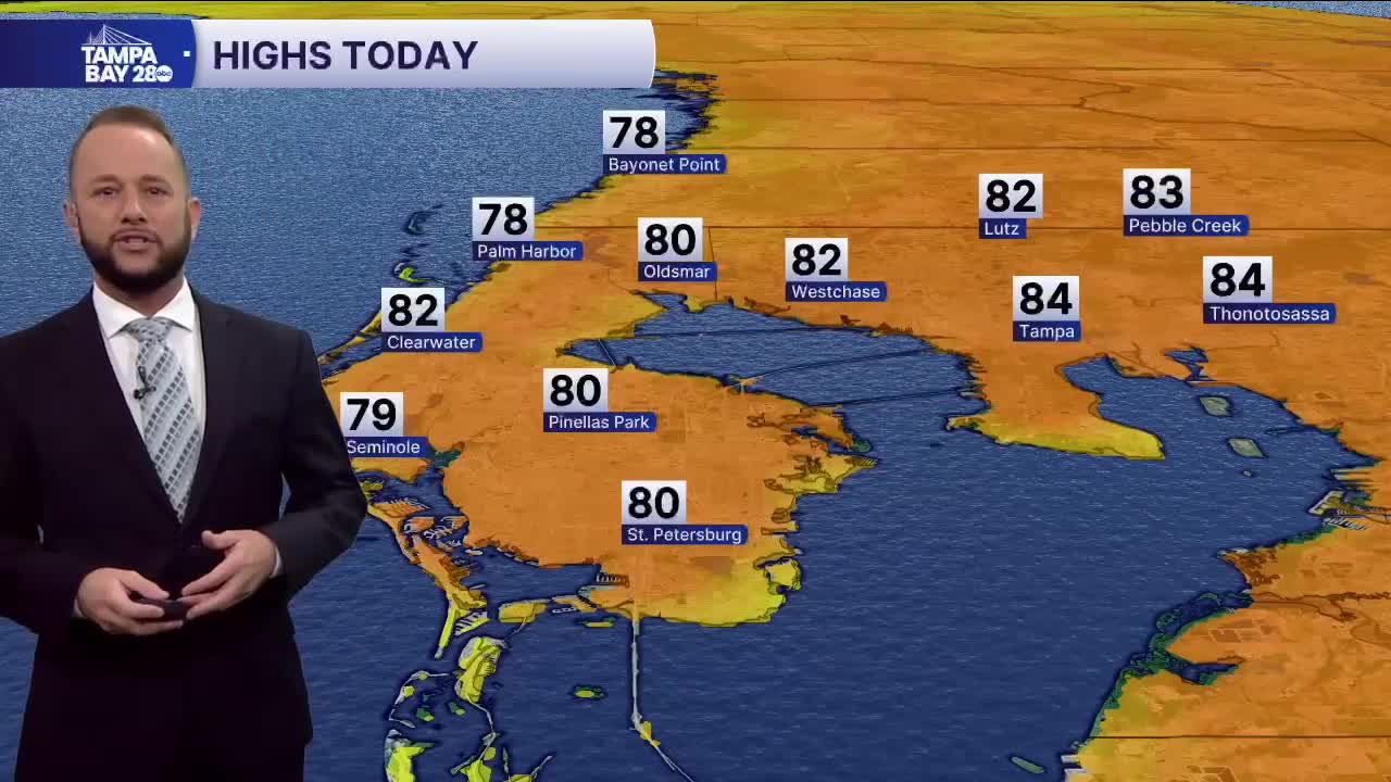 Expect sunny skies today with highs in the low to mid 80s. There are no weather concerns for the Bucs game today, but don't forget the hat and sunscreen while you're tailgating!