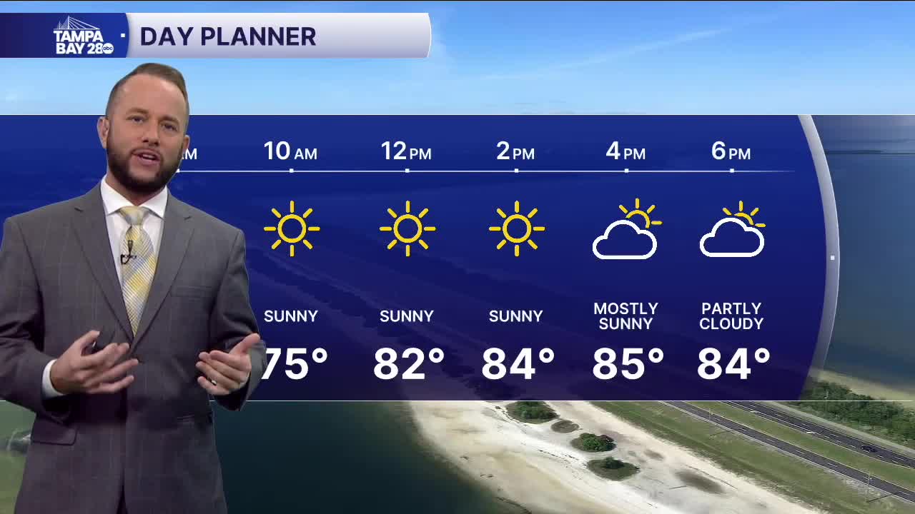 Expect another sunny and dry day today with highs in the mid 80s. Sunday, a front arrives late with increasing clouds and a slight shower chance.