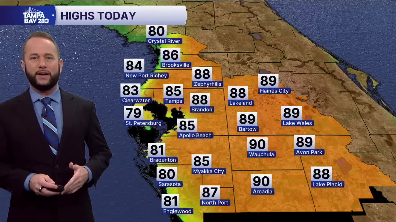Expect another gorgeous day today with sunny skies and highs in the upper 70s on the beach, to low 80s a few miles inland. I-75 and areas east will actually reach the mid to upper 80s, with a few spots hitting 90! Our average high this time of year is 75!