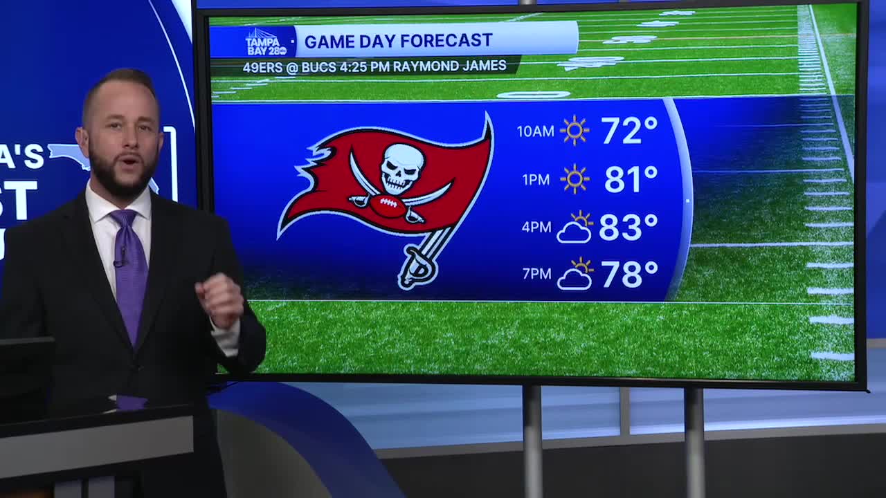 Expect one of our coolest mornings in MONTHS Sunday morning as lows fall into the 50s and 60s. Temps rise into the low to mid 80s for the Bucs game with sunny skies. Go Bucs!