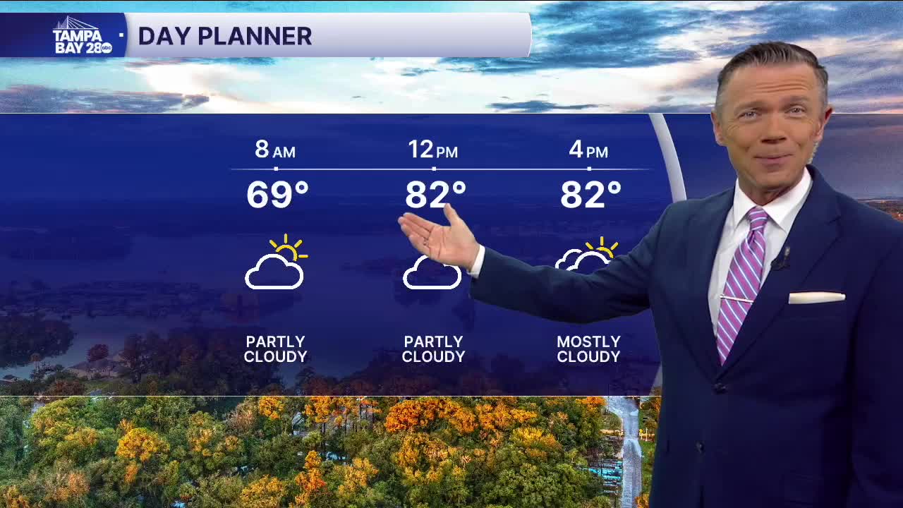 Look for some patchy fog this morning and temperatures in the 60s. We'll hit the low 80s before noon today and stay in the 80s through 5pm. Skies will be partly sunny with moderate levels of humidity.