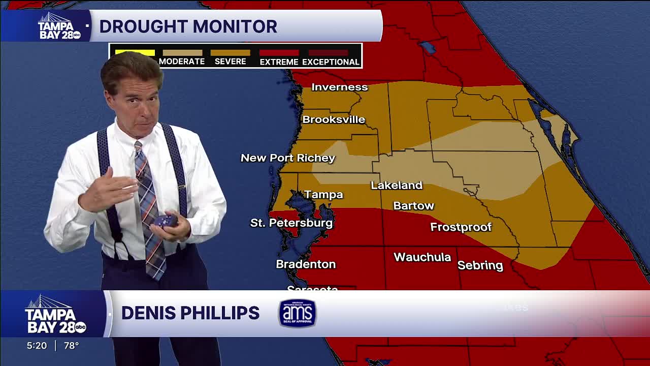 The Tampa Bay area is seeing warm, mostly dry weather this week, with inland highs in the 80s and coastal highs in the 70s. A stalled front is bringing only a slight chance of scattered showers, mainly south of I-4, with coverage expected to remain low.