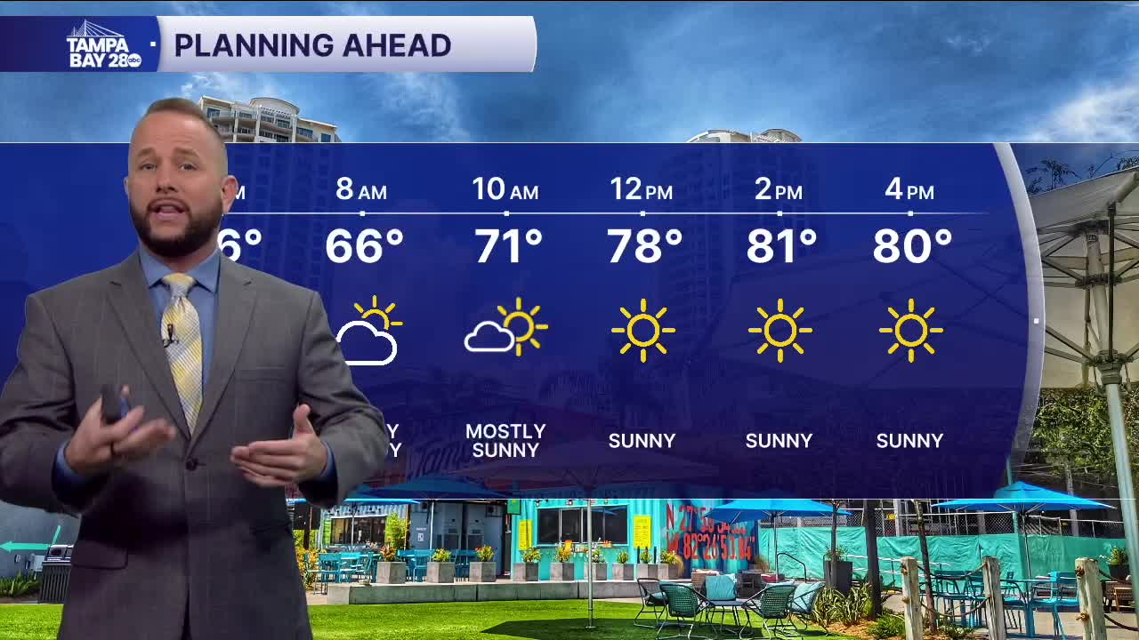 Sunday, we'll see a cold front arrive. It will bring a very slight chance for a few showers but coverage will be very spotty, only around 20%.