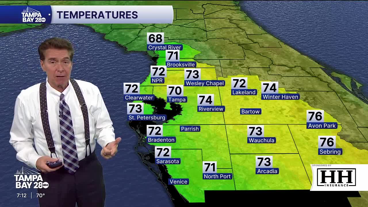 TAMPA, Fla. — Temperatures in Tampa Bay will climb well into the 80s over the next few days, with some inland spots approaching 90 degrees. Chief Meteorologist Dennis Phillips says morning fog will be widespread Thursday and Friday, followed by a drastic drop in temperatures early next week.