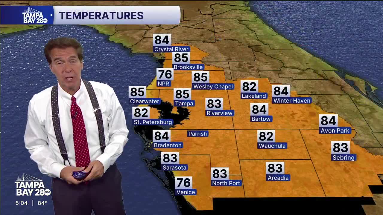 Sunny skies and warm temperatures are set to continue across Tampa Bay, with mid- to upper-80s expected and the possibility of reaching 90 degrees later this week.